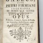 Gyges Gallus, sive Petri Firmiani ingeniosa in mores suae gentis quastio et animadversio : opus politicis, comicis, sacris et profanis oratoribus illustrissimum. Tyrnaviae, Typ. Academics Sociatatis Jesu, 1743.