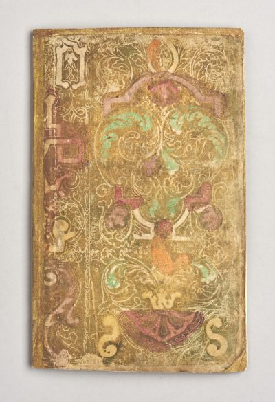 Sablonfestésű brokátpapírral borított kötésben.