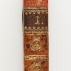 | Technika: | dúcnyomás (papír); félbőr kötés; kézi aranyozás; márványozott hatású festés (bőr) |