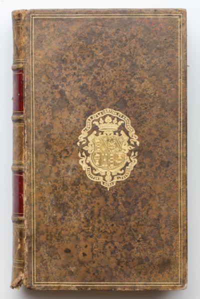 Barna márványozású borjúbőr kötésben. Elő és hátlapján vonalas arany keret, középen a neves bibliofil, Joaqín Gómez de la Cortina (1805–1868) aranyozott supralibrosa: nemesi koronás címer felett „J. Gomez de la Cortina et Amicorum", alul „Fallitur hora legendo” felirattal.