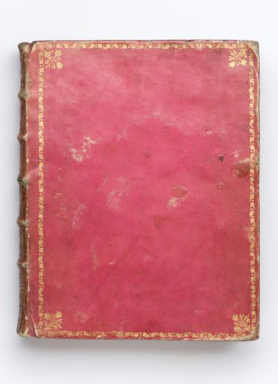 Technika: | aranyozott metszés; bőrkötés; kézi aranyozás; kosenillel színezett (bőr); papírmárványozás; timsós cserzés |