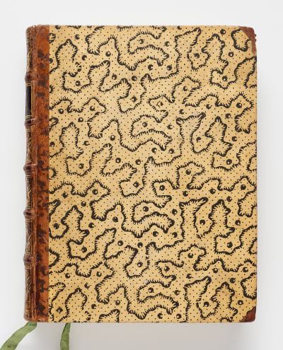 Technika: | dúcnyomás (papír); félbőr kötés; kézi aranyozás; márványozott festés (bőr) |