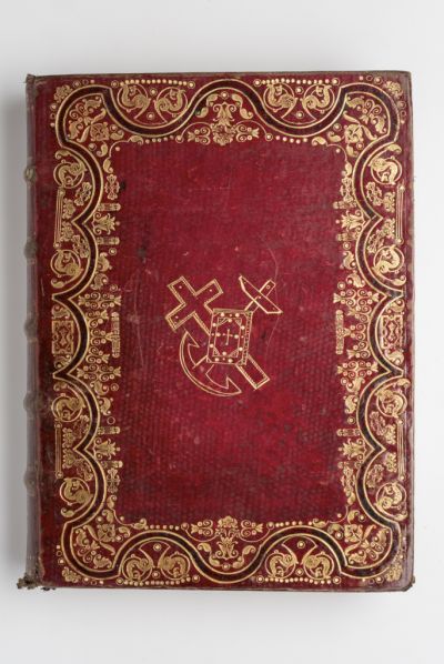 Technika: | aranyozott metszés; bőrkötés; kézi aranyozás; papírmárványozás; rézmetszet |