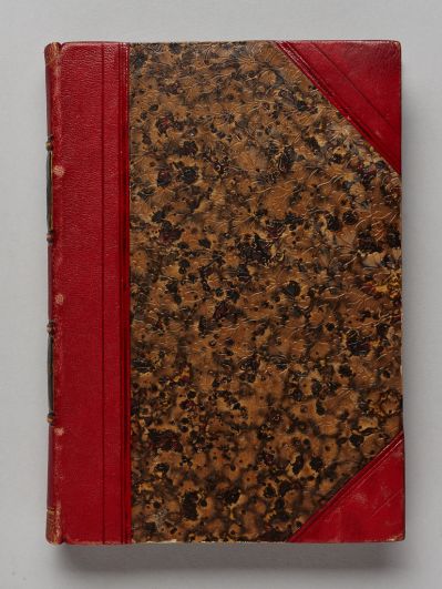 Anyag: | kecskebőr; moiré-mintás papír; papír; papírtábla |