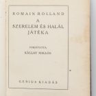 Könyv - Romain Rolland: A szerelem és halál játéka. Budapest, 1923