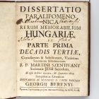 Dissertatio paralipomenica rerum memorabilium Hungariae. Ex parte prima decadis tertiae, curiosorum et selectiorum, variarum scientiarum miscellaneorum.R. P. Martini Szentivany. Tyrnaviae, Typis Academ. per Joan. Andream Hörmann, MDCXCIX [1699].