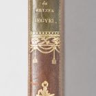 | Technika: | bőrkötés; kézi aranyozás; színesen festett metszés |
