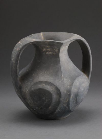 | Technika: | bekarcolt díszítés; benyomott díszítés; felrakott technikával; kézzel formált; redukciós égetés |