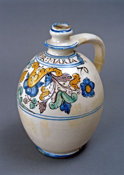 Technika: | fehér ónmázzal fedett; színesen festett |