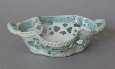 Technika: | áttört falú; fehér ónmázzal fedett; feketével kontúrozott; formába préselt elemekből összeállított; zölddel festett |