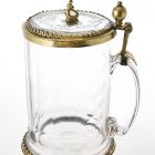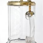 Hengeres teste fazettált, fülénél pontsorral díszített. Fedelén beköszörült szalag- és lombdísz, gombja szirén alakú. Nemesen egyszerű formája a hegyikristály edényekre emlékeztet.
