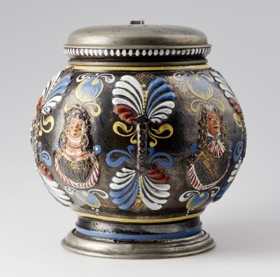 Technika: | plasztikusan díszített; sómázas; színesen festett |