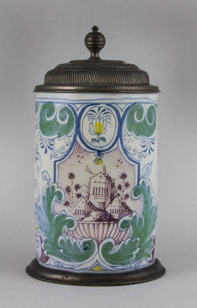 Kupa ónfedéllel - vár látképével, fedelén az Angyali üdvözletet ábárzoló éremmel
