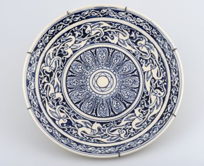 Technika: | csontszín festés; kobaltkék alap; mázas |
