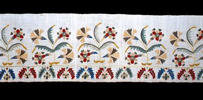 Anyag: | aranyszínű fémfonal; ezüstszínű fémfonal; lenvászon; selyemfonal |