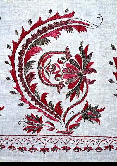 A magyar úrihímzések egyik legszebb, rajzában és hímzéstechnikájában egyik legkiválóbb darabja. tervezője és készítője egyaránt hivatásos mester lehetett.