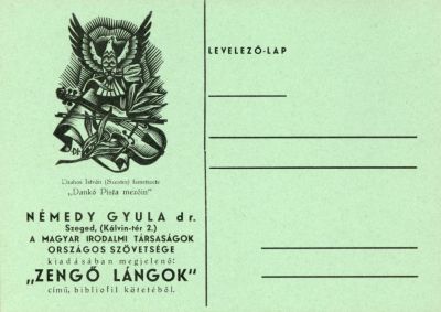 Levelezőlap - Némedy Gyula dr „ Zengő lángok” c. kötete hirdetésével