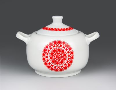Levesestál fedéllel (készlet része) - A Bella-207 asztali készlet része, piros színű Gabriella dekorral