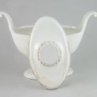 Sima elliptikus talp, tagolt peremmel, csónak alakú edénytest, két oldalán csigásán kialakított fogóval. Fedele gomba alakú fogóban végződik, melyet lehajló csipkés levélsor övez. Sima felületét a test alján plasztikus akantusz- és babérlevelek váltakozó sora díszíti.