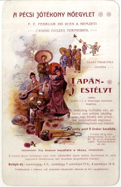 Meghívó - a Pécsi Jótékony Nőegylet Japán estélyére, Darilek Henrik terve után
