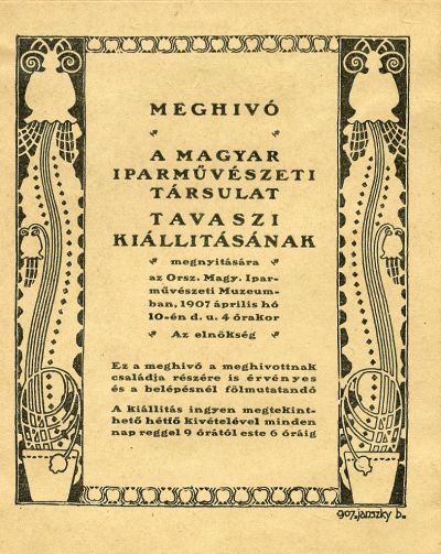 Meghívó - az Iparművészeti Társulat 1907. évi tavaszi kiállításának megnyitójára