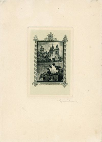 Metszet felirat nélkül - Vajdahunyadvára pillangóval