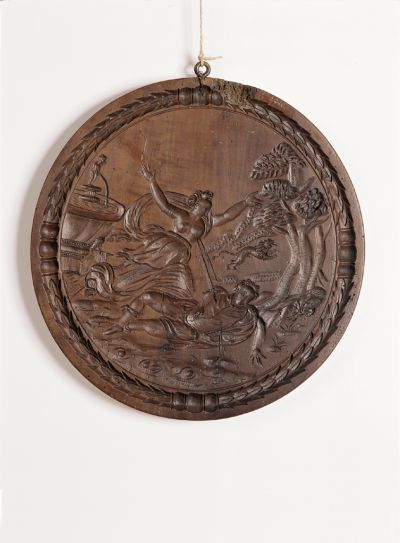 A kerek forma mindkét oldalán egy-egy mitológiai jelenet látható levélkoszorús keretben: egyik oldalon Actaeon és Diana, másik oldalon Pyramus és Thisbe. Az ábrázolásokhoz minden bizonnyal Ovidius Metamorphosesének egy népszerű, 1581-ben, Frankfurt am Main-ban megjelentetett kiadásának metszetillusztrációi szolgáltak előképül (ld. itt és itt).