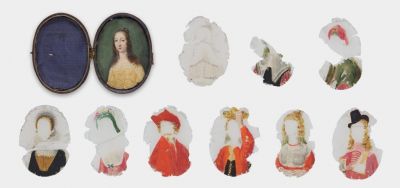 Miniatűr képmás - csillámlapra festett ruha-képpel