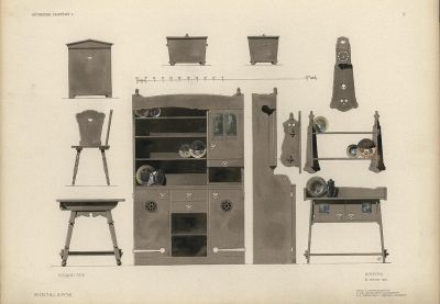 - Szerk.: Ráth György: Bútoripari mintalapok iparosok és ipariskolák számára. Magyar Iparművészeti Társulat, Budapest, 1903. - I. füzet, 5. lap.