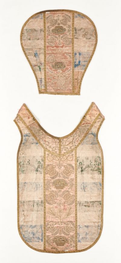Anyag: | aranyszínű fémfonal; selyem; selyemfonal; vászon bélés |