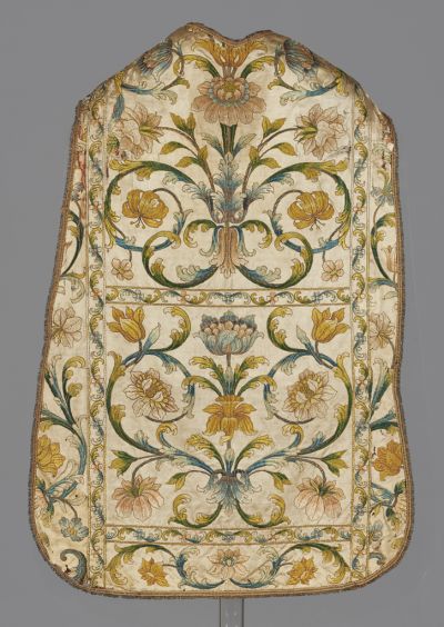 Anyag: | aranyszínű fémfonal; aranyszínű paszomány; selyem; selyemfonal; selyemmel bélelt |
