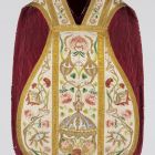 | Anyag: | aranyszínű fémfonal; ezüstszínű lamella; selyem; selyemfonal |