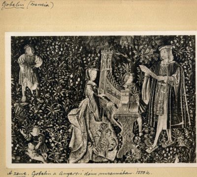 Műlap - a Zene allegóriáját ábrázoló gobelin az angersi székesegyházi múzeumban