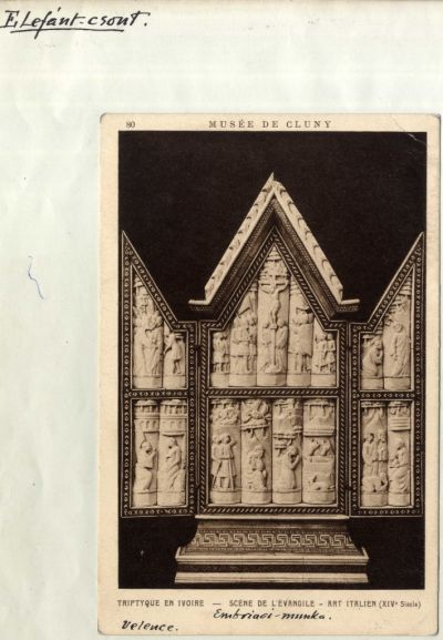 Műlap - evangéliumi jeleneket ábrázoló triptichon a velencei Embriachi műhelyből a párizsi Musée de Cluny-ben, XIV.sz.