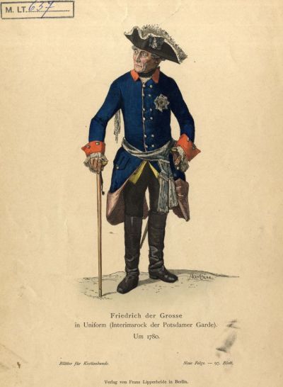 Műlap - Frigyes porosz király a potsdami gárda egyenruhájában