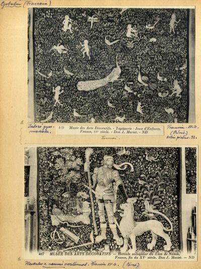 Műlap - játszó gyermekek, valamint Herkules a nemeai oroszlánnal, gobelin, Musée des Art Décoratifs
