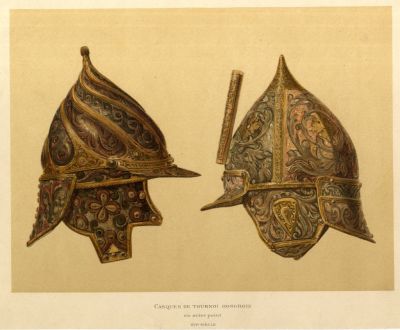 Műlap - magyar torna sisakok, XVI.sz., Radisics Jenő: Magyar műkincsek mellékletei. II. kötet, 14. melléklet