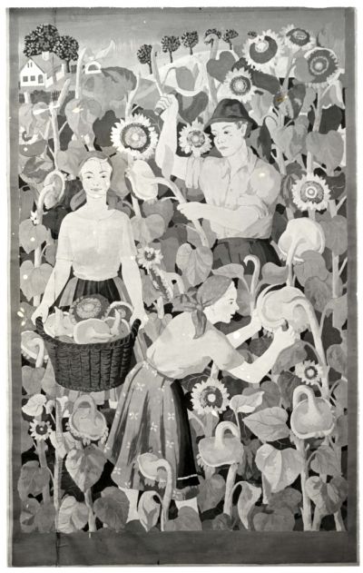 Műlap - napraforgó szüretet ábrázoló gobelin