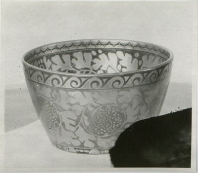 Műtárgyfotó - díszcsésze, csonka kúp alak a Zsolnay gyárból, 1910 k.