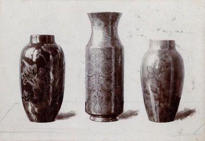 Műtárgyfotó - eozinmázas Zsolnay vázák az Iparművészeti Társulat 1898. évi Karácsonyi Kiállításán