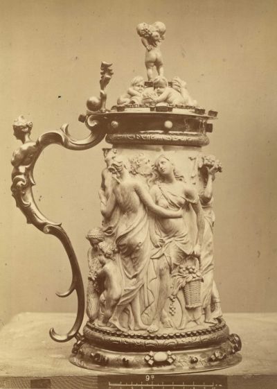 Műtárgyfotó - fedeles kupa bacchanália ábrázolásával az 1876. évi műipari kiállításon a fraknói Esterházy- kincstárból