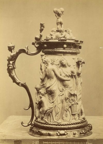 Műtárgyfotó - fedeles kupa bacchanália ábrázolásával az 1876. évi műipari kiállításon a fraknói Esterházy-kincstárból