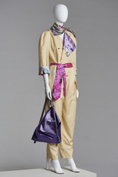 A tervezőket éppen ez a giccs határát súroló imitáció ragadta meg. Elkezdtek azon gondolkodni, hogy a fautánzatú porcelánt hogyan tudnák textilen megjeleníteni. Így találtak rá a jaquard moiréra, ami nem más, mint egy hamis moiré selyem. A sportosan elegáns overált lezser nyakkendőöv díszíti deréktájon. Elképzelt viselője, Maya ugyanis szeret szórakozni, mozogni és mélyen átéli az érzelmeit. A hajtókára Gaya Arutyunyan kortárs örmény festőművész alkotásának replikája került. Az eredeti festmény színvilágát a porcelán purpur (bíborlila) árnyalataihoz igazították. Tanja Zabina kortárs művész alkotása a ruhaujj passzéján köszön vissza. A tervezők ezzel a mintával a sejtszintű érzékelést, a zsigeri percepciót mutatják be. Az overál hátát díszítő hímzett, magyar nyelvű feliratok Maya utazásainak emlékeit idézik. Az elegáns lila bőrből készült Delta hátizsák szabását egy tokiói utazás ihlette. A hagyományos vízszintes helyett keleties, hosszanti zipzárvonalat alkalmaztak.