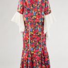 A „Földi paradicsom” szoknya és felső a Kortárs Design Osztály által 2018-ban útjára indított Körforgásban c. kiállítás-sorozat keretében jött létre. Koncepció szerint a felkért tervező kiválaszt egy tárgyat vagy tárgyegyüttest az Iparművészeti Múzeum gyűjteményéből, melynek inspirációjára saját dizájnt hoz létre. Negyedik meghívottunk a Romani Design a világ első roma divatstúdiója. A dizájnerek összesen hat műtárgyat választottak a múzeum gyűjteményéből (20142.b; 20129; 88.230.1; 88.301.1; 89.324.1; 2010.59.1). Nem véletlen, hogy ezek mind Szűz Máriát vagy női szenteket ábrázoló szentképek, melyek inspirációjára hat elbűvölően gazdag mintázatú női öltözéket és hozzájuk illeszkedő kiegészítőket készítettek az alkotók (ld. még: 2021.515.1; 2021.516.1-2; 2021.517.1-2; 2021.519.1; 2021.520.1; 2021.521.1; 2021.522.1).