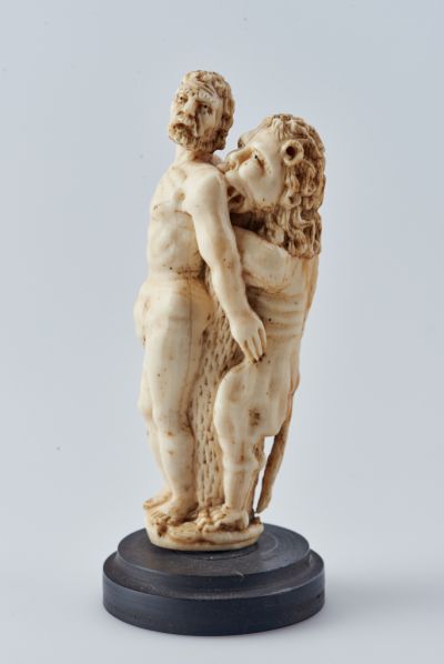Pigler Andor alapvető kézikönyvének tanúsága szerint e téma 17-18. századi ábrázolásai között kisplasztikák csupán elenyésző számban fordulnak elő (Pigler A: Barockthemen. Budapest 1974, II. 331-332). Ez a körülmény kölcsönöz némi jelentőséget e meglehetősen gyatra kivitelű faragványnak, amely kétségkívül krotóni Milónt és a rátámadó fenevadat jeleníti meg. A faragvány eredeti rendeltetése tisztázatlan.