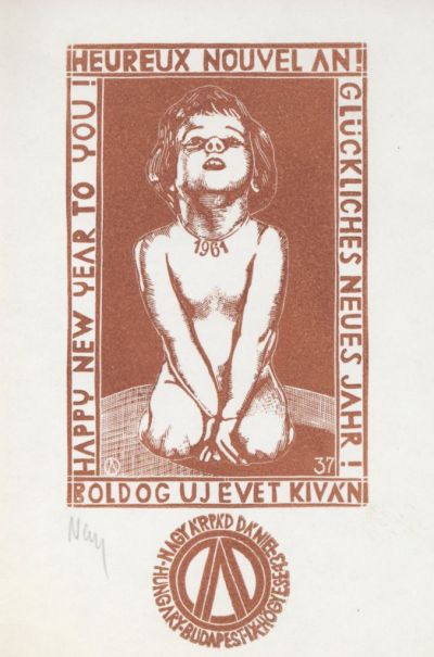 Alkalmi grafika - Újévi üdvözlőlap: B .U .É .K. 1961 Nagy Árpád Dániel (3 nyelven)