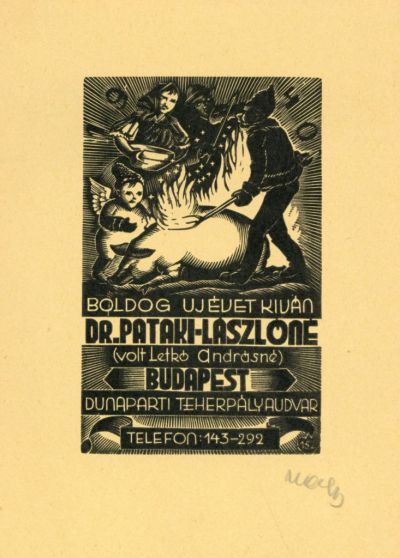 Alkalmi grafika - Újévi üdvözlőlap: BÚÉK dr. Pataki Lászlóné (volt Letkó Andrásné)