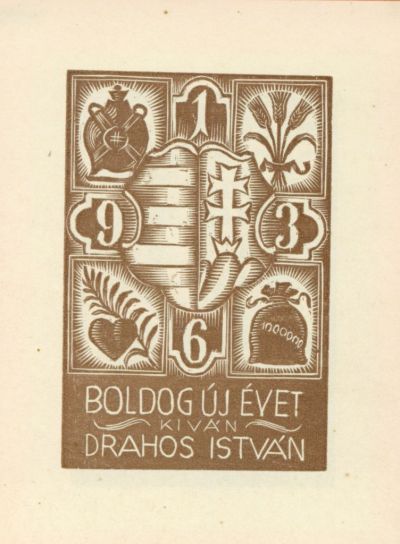 Alkalmi grafika - Újévi üdvözlet: Boldog új évet kíván Drahos István
