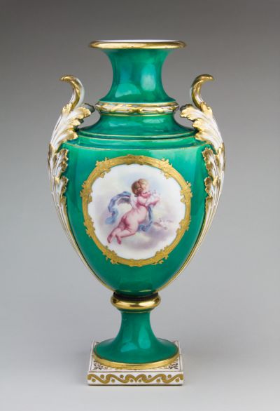 Jelzés: | a száj belsejében máz felett vörössel: korona/N/57, 'DECORE A SEVRES' körirattal |