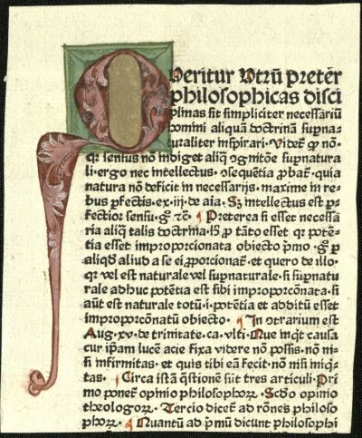 Ősnyomtatvány töredék (iniciálé) - „Q” iniciálé